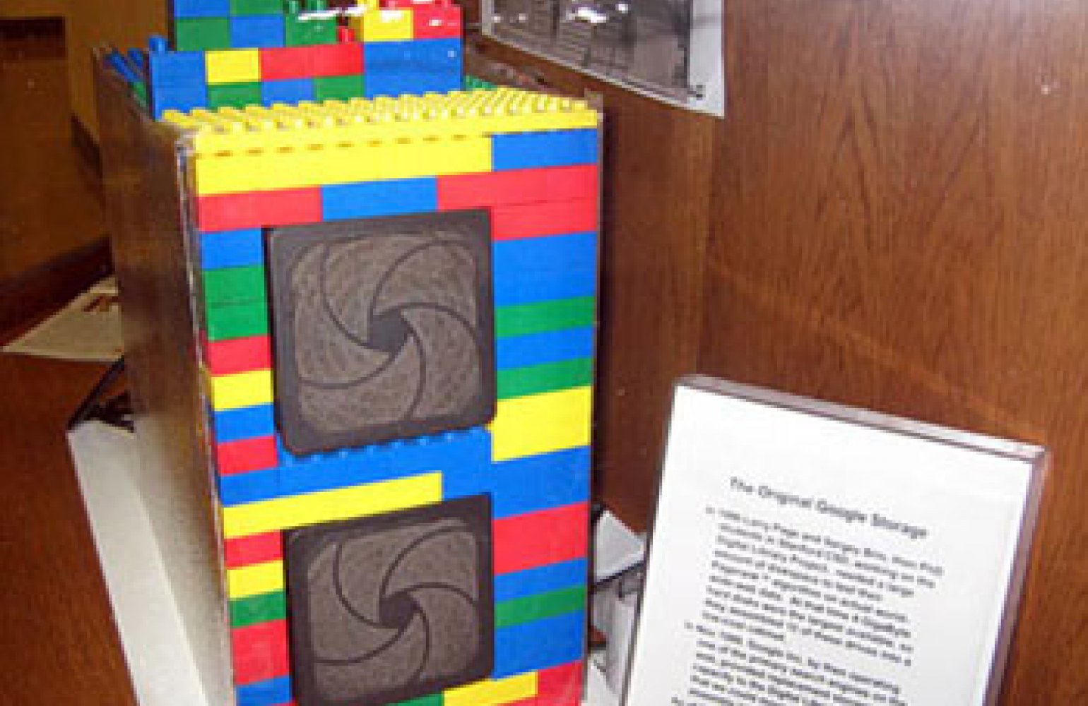 Larry Page és Sergey Brin, a Google alapítói, saját maguk készítették el első tár rendszerüket. Az akkori winchesterek maximális tároló kapacitása 4 GB volt, ezekből 10 egységet helyeztek el ebben a Lego dobozban.