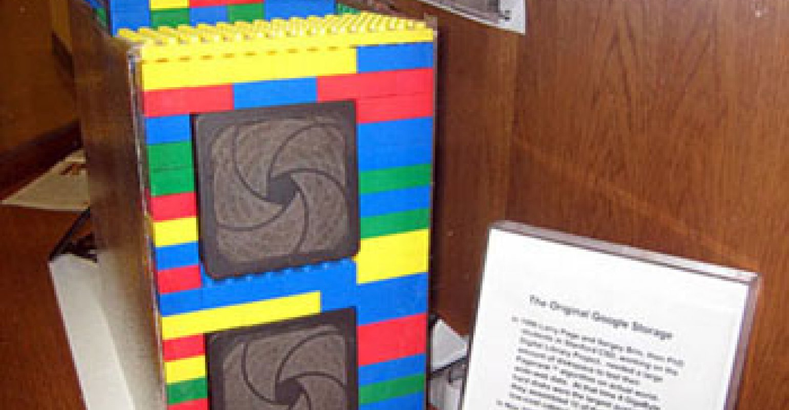 Larry Page és Sergey Brin, a Google alapítói, saját maguk készítették el első tár rendszerüket. Az akkori winchesterek maximális tároló kapacitása 4 GB volt, ezekből 10 egységet helyeztek el ebben a Lego dobozban.